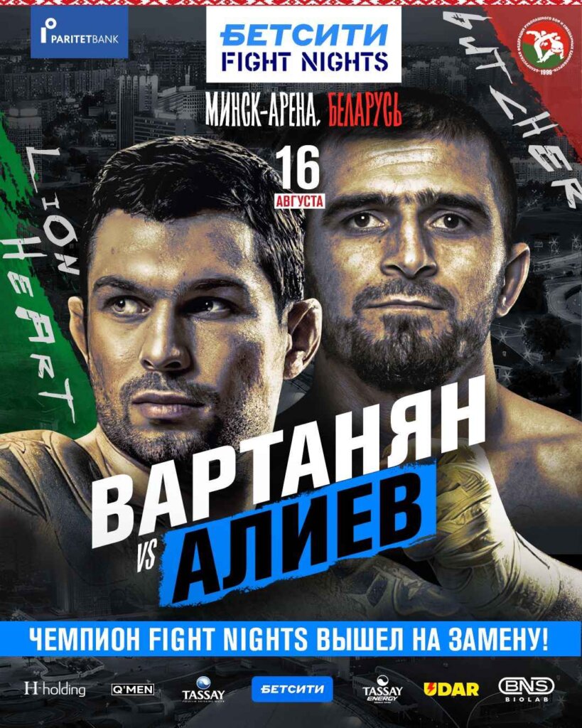 БЕТСИТИ Fight Nights и Paritetbank при поддержке Белорусской федерации рукопашного боя и смешанных единоборств проведут один из крупнейших турниров в Минске. В главном бою 16 августа столкнутся Эдуард Вартанян и Ахмед Алиев. Об этом рассказали в Paritetbank, выступившем соорганизатором турнира.