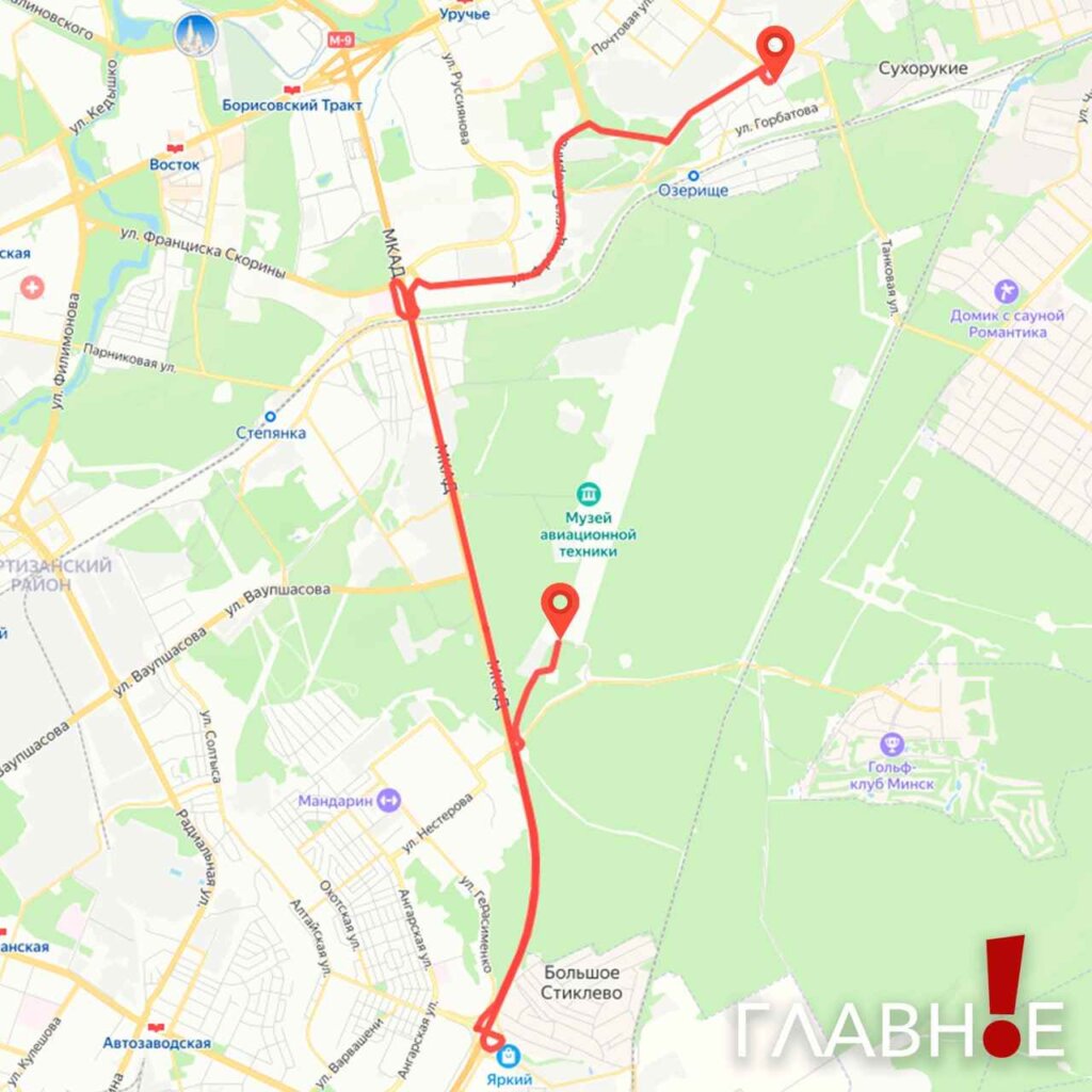 А с 19.50, также примерно на один час, будет ограничиваться движение по маршруту аэродром Липки — внешнее кольцо МКАД — ул. Франциска Скорины — ул. Стариновская — ул. Основателей.