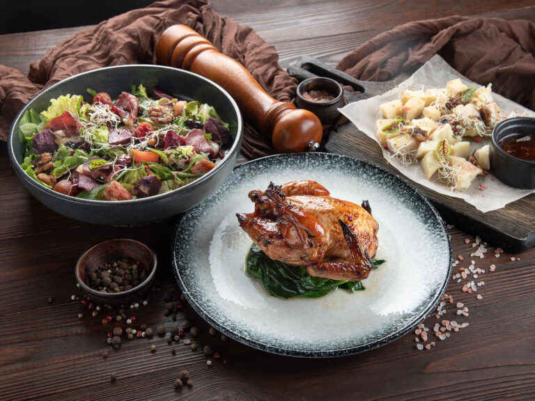 Кухня ресторана «Бульбашы» сочетает в себе традиционные белорусские рецепты и современные кулинарные тенденции. Ингредиенты для блюд подбираются с особым вниманием к качеству и свежести, что делает еду по-настоящему вкусной и ароматной.