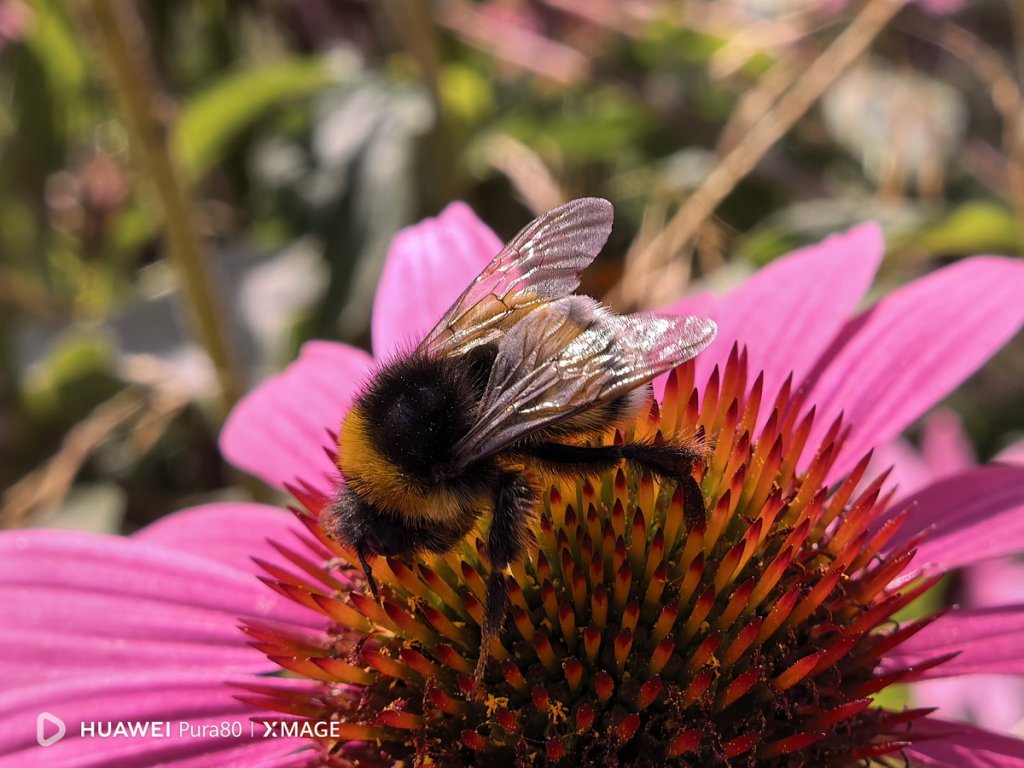Huawei Pura 80 поддерживает макросъемку, что позволяет использовать смартфон как лупу. По дороге запечатлеваем с ее помощью нескольких представителей местной флоры. И даже шмеля удалось сфотографировать достаточно подробно.