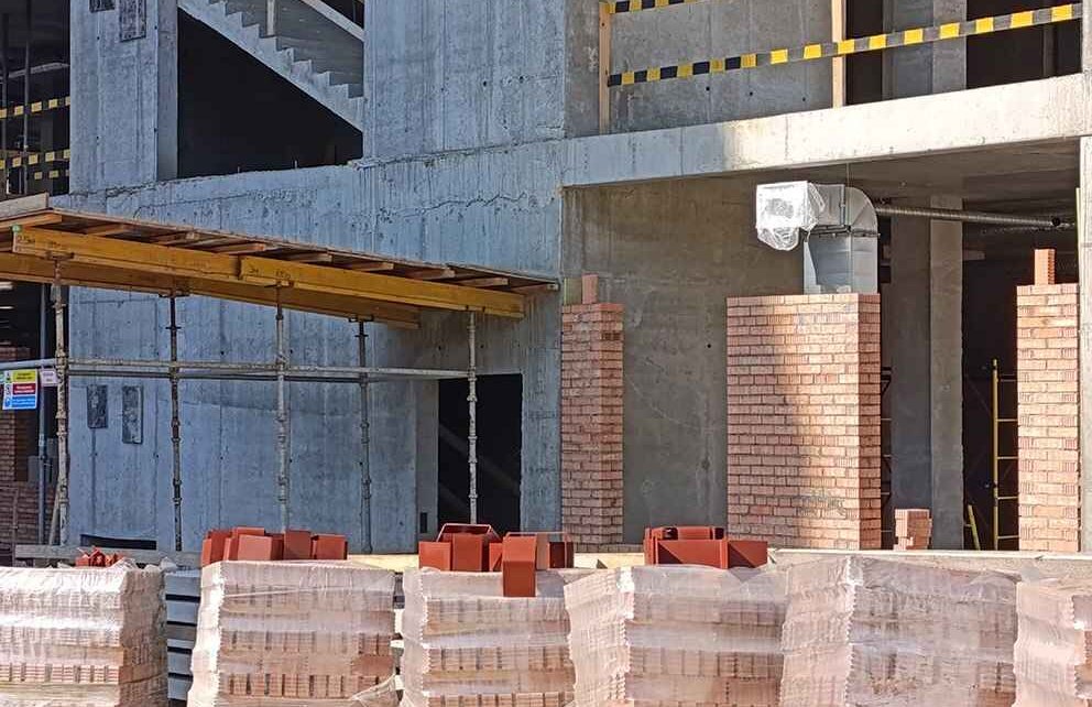 На объекте уже начались каменные работы, на первом этаже ведется кладка.