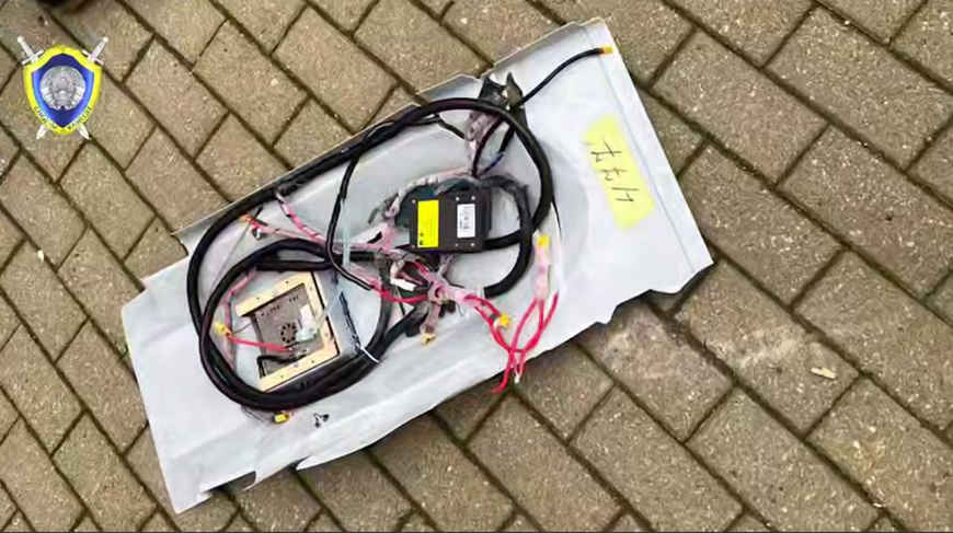 На месте падения были изъяты фрагменты корпуса и крыльев БПЛА, двигатель, приборы навигации и боевая часть, снабженная тротилом и большим количеством поражающих элементов в виде металлических шариков.