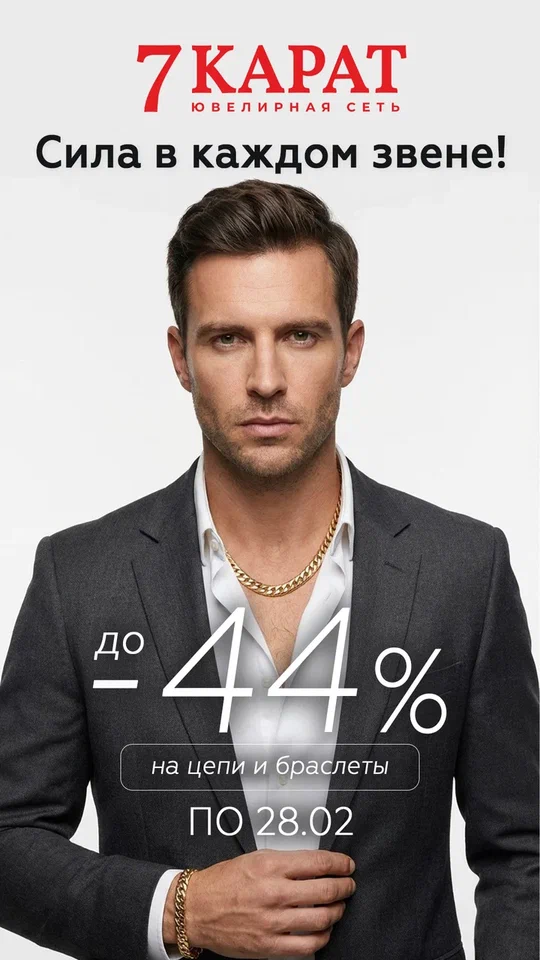 Цепи и браслеты остаются одними из самых универсальных подарков. Их носят каждый день, они легко сочетаются с разным стилем и при этом выглядят статусно. Массивные браслеты с плетением для мужчин, тонкие и изящные цепочки — для женщин. И на популярные модели в 7 КАРАТ действуют скидки до 44% по 28 февраля включительно.