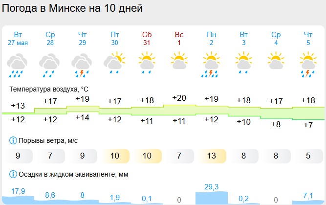 В Минске будет также пасмурно и дождливо, такая вот весна и начало лета.