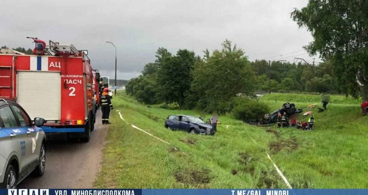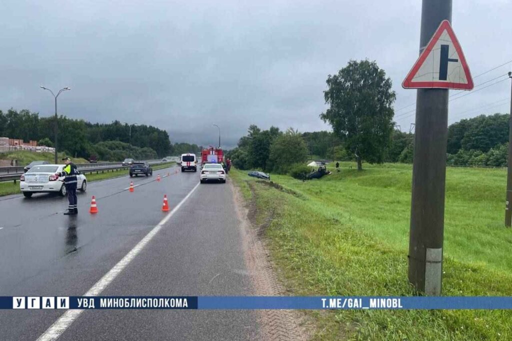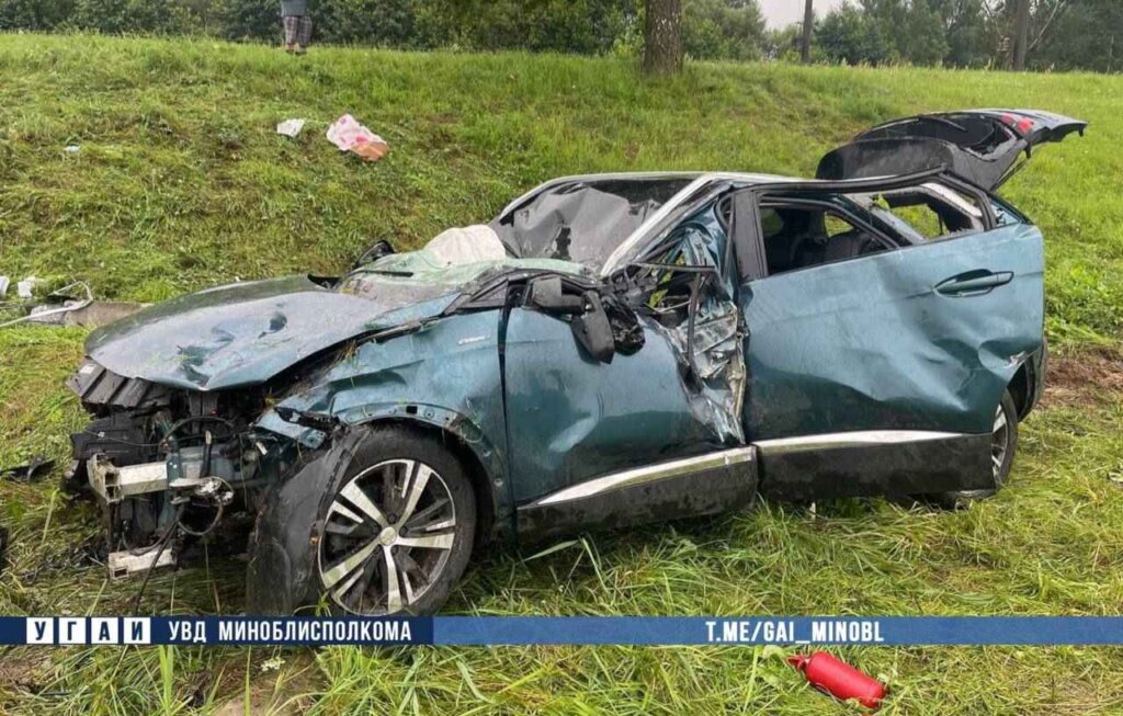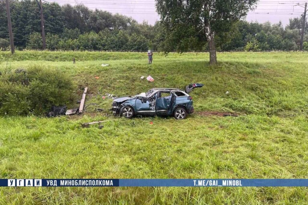 Буквально в это же время, на этом же участке автодороги, 53-летний водитель, двигаясь на автомобиле Peugeot в направлении Минска, не справился с управлением и совершил столкновение с дорожным ограждением, далее авто отбросило на обочину, где врезался в столб, после чего автомобиль опрокинулся в кювет.
