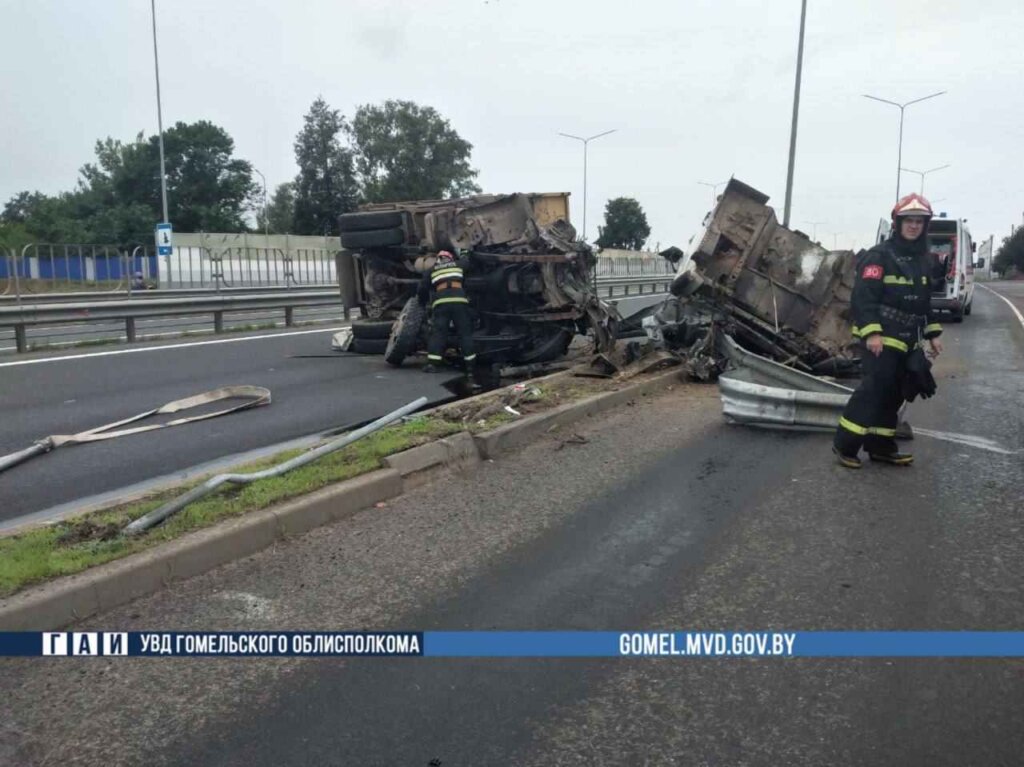 В Жлобинском районе днем 52-летний водитель автомобиля «Маз» ехал по автодороге М-5 «Минск — Гомель», со стороны Гомеля в направлении Минска, уснул за рулем, наехал на ограждение и опрокинулся.