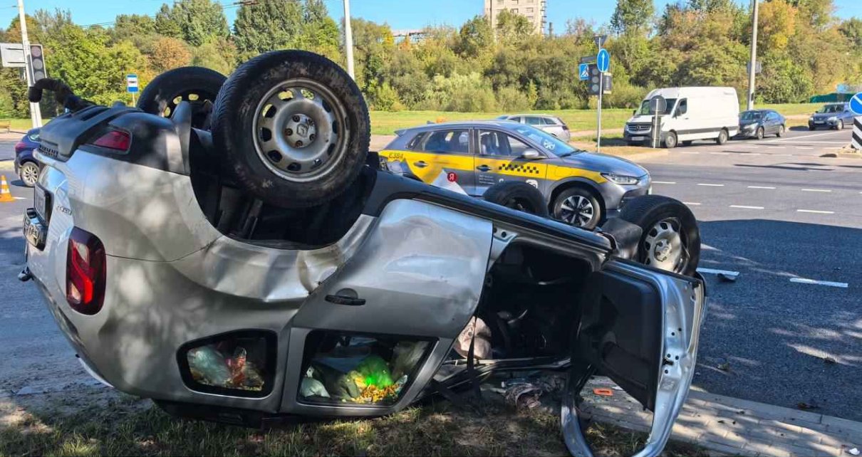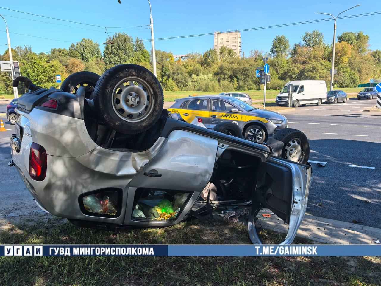 Днем на улице Семашко в столице произошла авария, в которой автомобиль перевернулся и пострадали четыре человека.