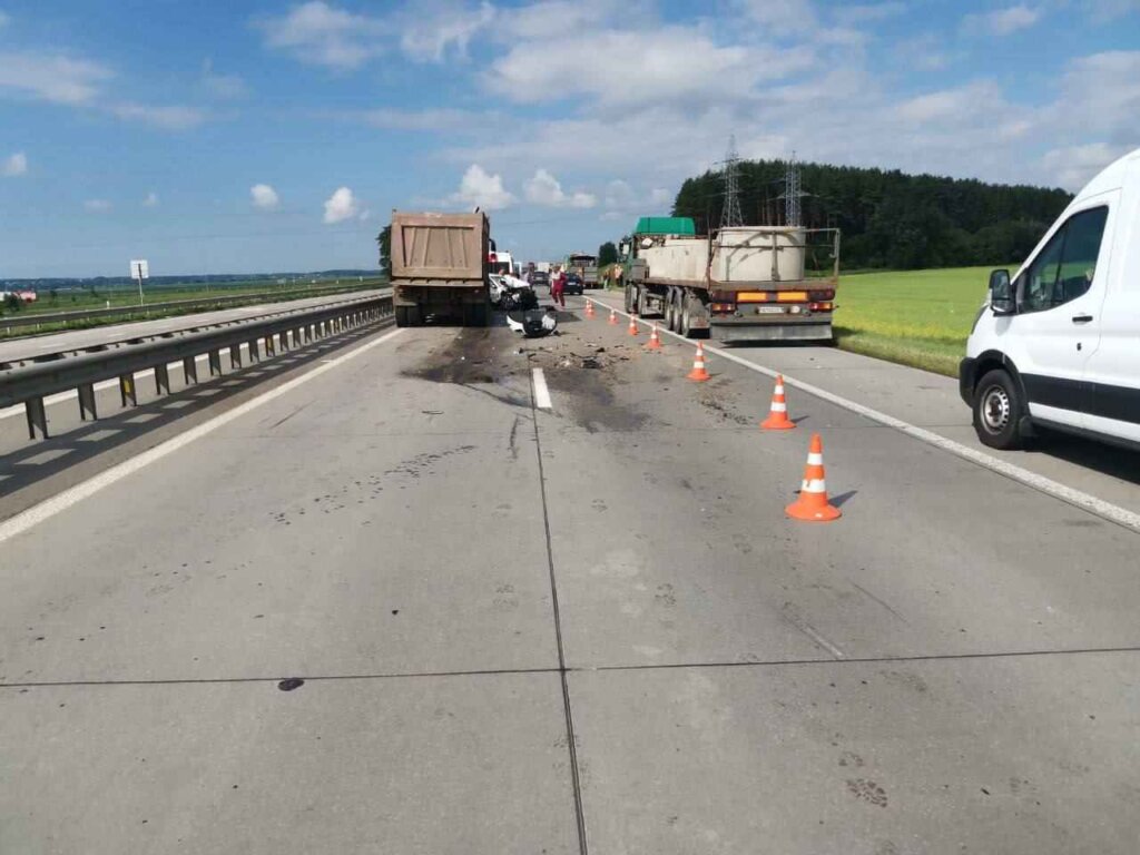 Утром на трассе Р‑53 в направлении Минска произошло цепное столкновение автомобилей.