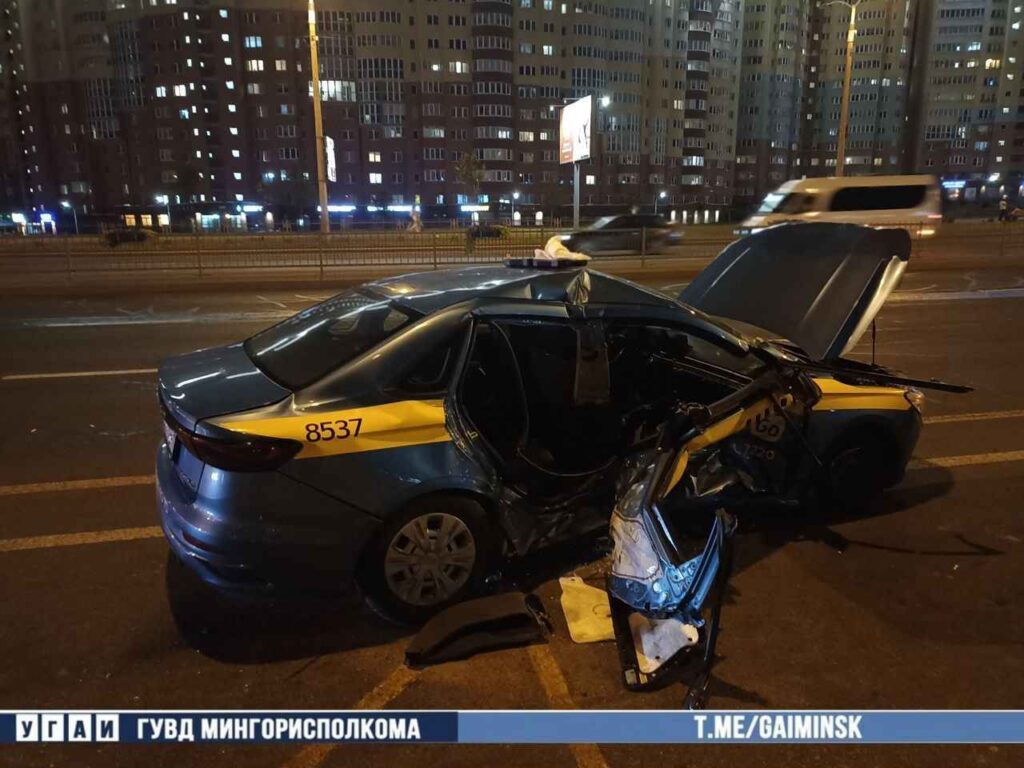 От удара автомобиль такси продолжил движение и совершил наезд на осветительную мачту, а затем на стоящий автомобиль «Renault».