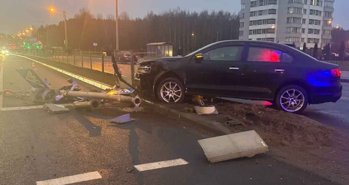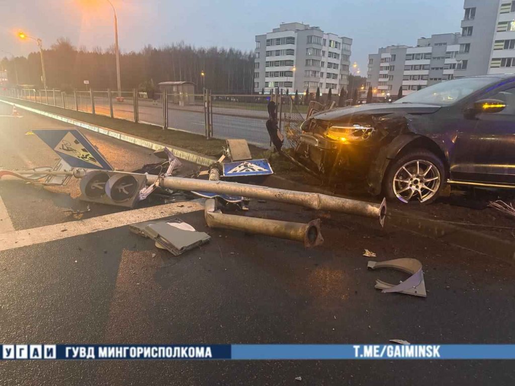 Утром 48-летняя водитель автомобиля «Volkswagen Jetta» ехала по улице Франциска Скорины и около пересечения с улицей Жасминовой выехала за пределы проезжей части и врезалась в светофор и металлическое ограждение.