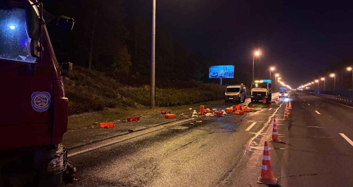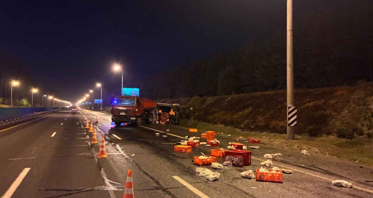 Вечером на 34-м километре внешнего кольца МКАД произошло дорожно-транспортное происшествие с участием грузового автомобиля «Scania» с прицепом и легкового автомобиля «Opel». 48-летний водитель фуры, выполняя перестроение, не убедился в безопасности маневра. В результате этого произошло столкновение с автомобилем «Opel», который двигался в попутном направлении. От удара легковая машина врезалась в разделительное ограждение и выехала за пределы проезжей части. К счастью, в аварии никто не пострадал. Автомобили получили механические повреждения. На